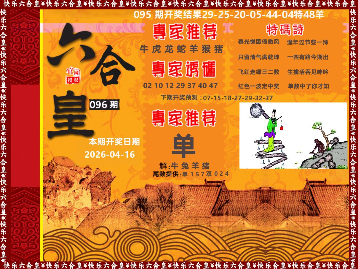 095期:★必中六肖★ 《【虎猴羊鸡马鼠】》开:48羊准